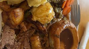 TUCK INTO OUR FAMOUS CARVERY - " WITH A CHOICE OF 3-4 ROAST MEATS AND GENEROUS HELPING OF 6-7 FRESH SEASONAL VEG."